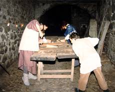 | popolane con bambini | l'interno di un'antica abitazione | una falegnameria |