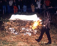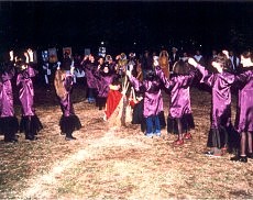 | l'accensione del rogo | ultimi ammonimenti del commissario inquisitore | Balletto dei bambini delle scuole elementari e medie di Capo di Ponte |